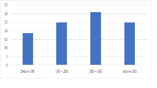| Above 300 | 4 | 25.00 |