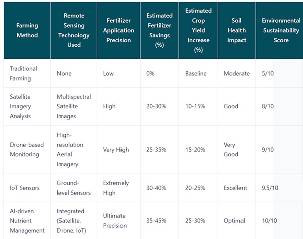 In the future, fertilizer application may be further optimized by combining SMART fertilizers with precision agricultural technologies including data- driven soil monitoring, AI-driven nutrient management, and remote sensing. Policy frameworks must also encourage the switch to environmentally friendly fertilizer techniques in order to promote sustainable farming practices.